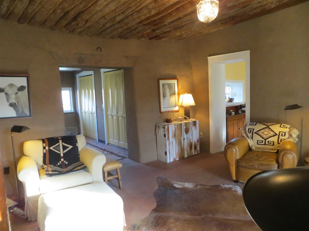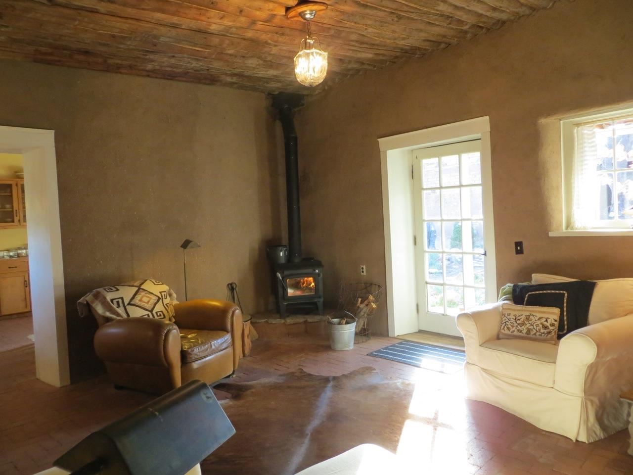 If you enjoy being just a little off the beaten path, just little out of the way, in the arms of the Sangre de Cristo mountains with wide open space around you, El Rito is your place. In the heart of the village, this unique property is now offered for sale. Secluded with a high walled compound, this authentic Territorial adobe has been thoughtfully restored throughout. This home has spacious rooms with high ceilings and careful attention to preserving its original character and architectural integrity…adobe walls, nooks and niches, carved lintels, vigas and exposed beams, and rustic paneled doors blend seamlessly with the wood and brick floors. El Rito Hideaway is completely enclosed with a courtyard, 1237 sq ft main house, 630 sq ft guest house. The guesthouse has a full kitchen, bath and courtyard and patio. The light filled studio/gallery with 1500 sq ft that once served the 19th century stage coach travelers, offers plenty of workspace for artists and craftsmen. All of this sits on over an acre of land with lush gardens and mature fruit trees with irrigation rights from the acequia. And plenty of room for a horse! El Rito is home to the historic campus of the Northern New Mexico College, a vibrant library, schools, churches, medical clinic, and is widely known for its nationally acclaimed El Farolito restaurant. The community has an abundance of artists, artisans, and the tradition of Spanish Colonial crafts. Only 60 miles to Santa Fe, Taos, and Whole Foods.