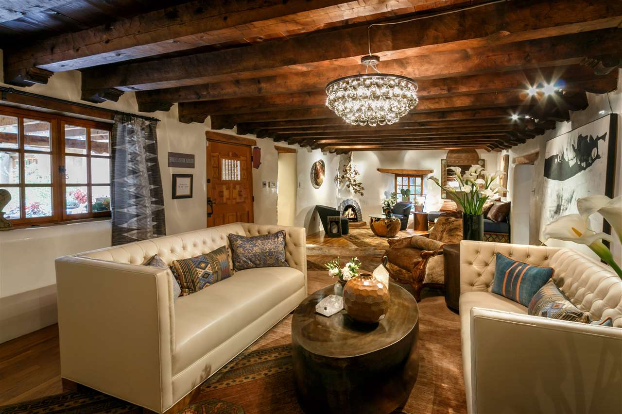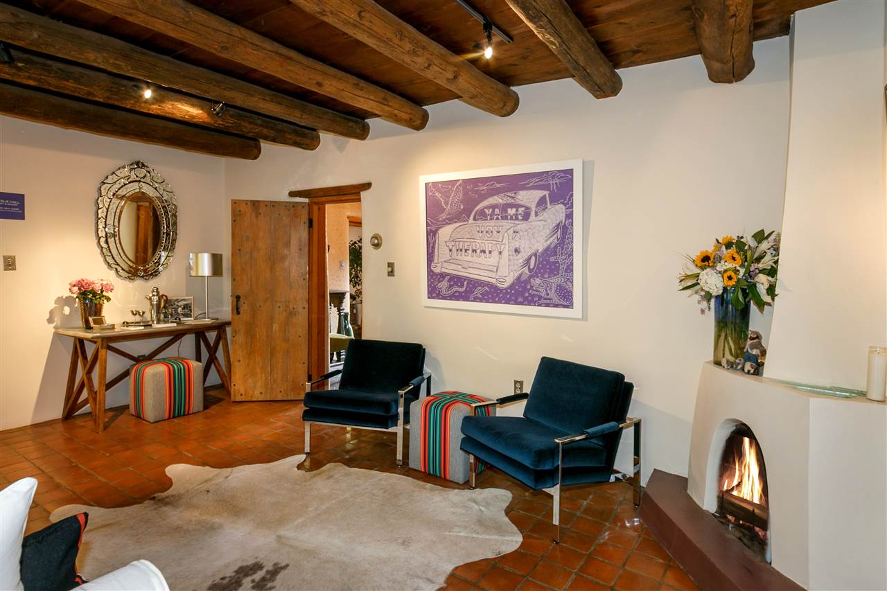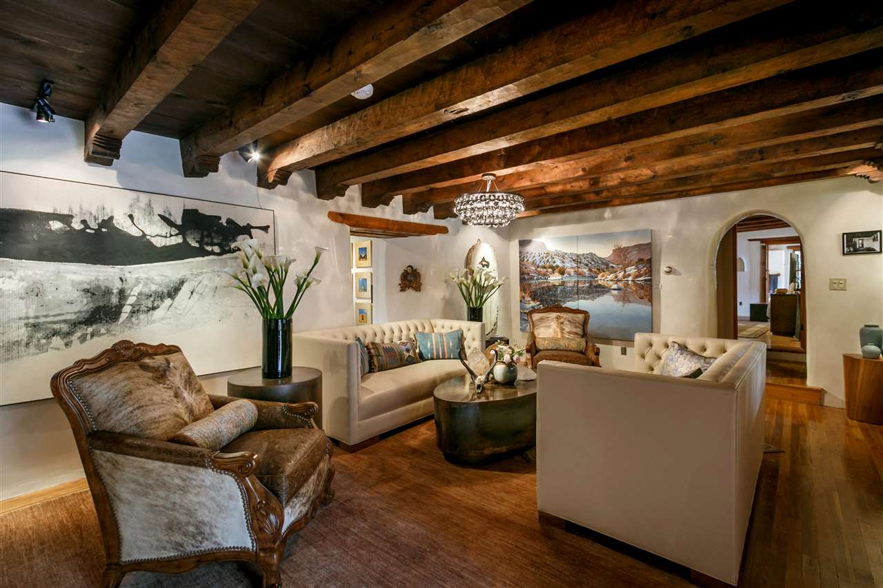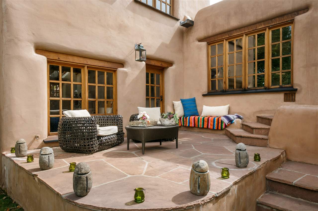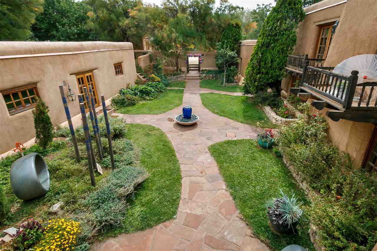 Now known as the Frank Applegate Estate. This was the hub of the folk art movement in New Mexico. One of Santa Fe's oldest historic estate properties originally built in the 1700s, bought by Spainsh army sargeant Francisco de la Pena in 1845 and then in the 1920s by artist Frank Applegate. With its glorious outdoor spaces on 1.74 acres including a beautifully landscaped traditional Placita enclosed courtyard and clay tennis court, this very private family compound in a superb location is a rare offering indeed. There is also a well with an acre foot of water for landscaping purposes.