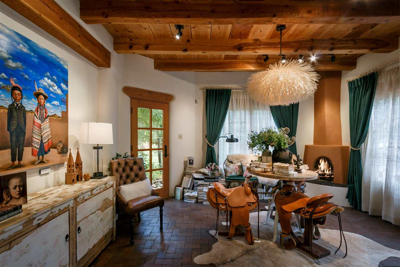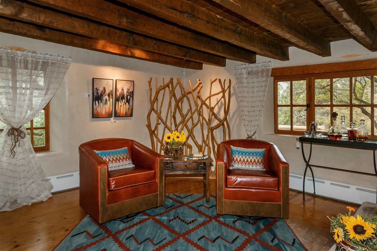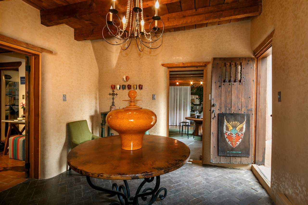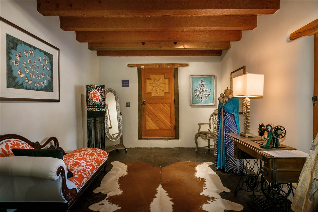 Now known as the Frank Applegate Estate. This was the hub of the folk art movement in New Mexico. One of Santa Fe's oldest historic estate properties originally built in the 1700s, bought by Spainsh army sargeant Francisco de la Pena in 1845 and then in the 1920s by artist Frank Applegate. With its glorious outdoor spaces on 1.74 acres including a beautifully landscaped traditional Placita enclosed courtyard and clay tennis court, this very private family compound in a superb location is a rare offering indeed. There is also a well with an acre foot of water for landscaping purposes.