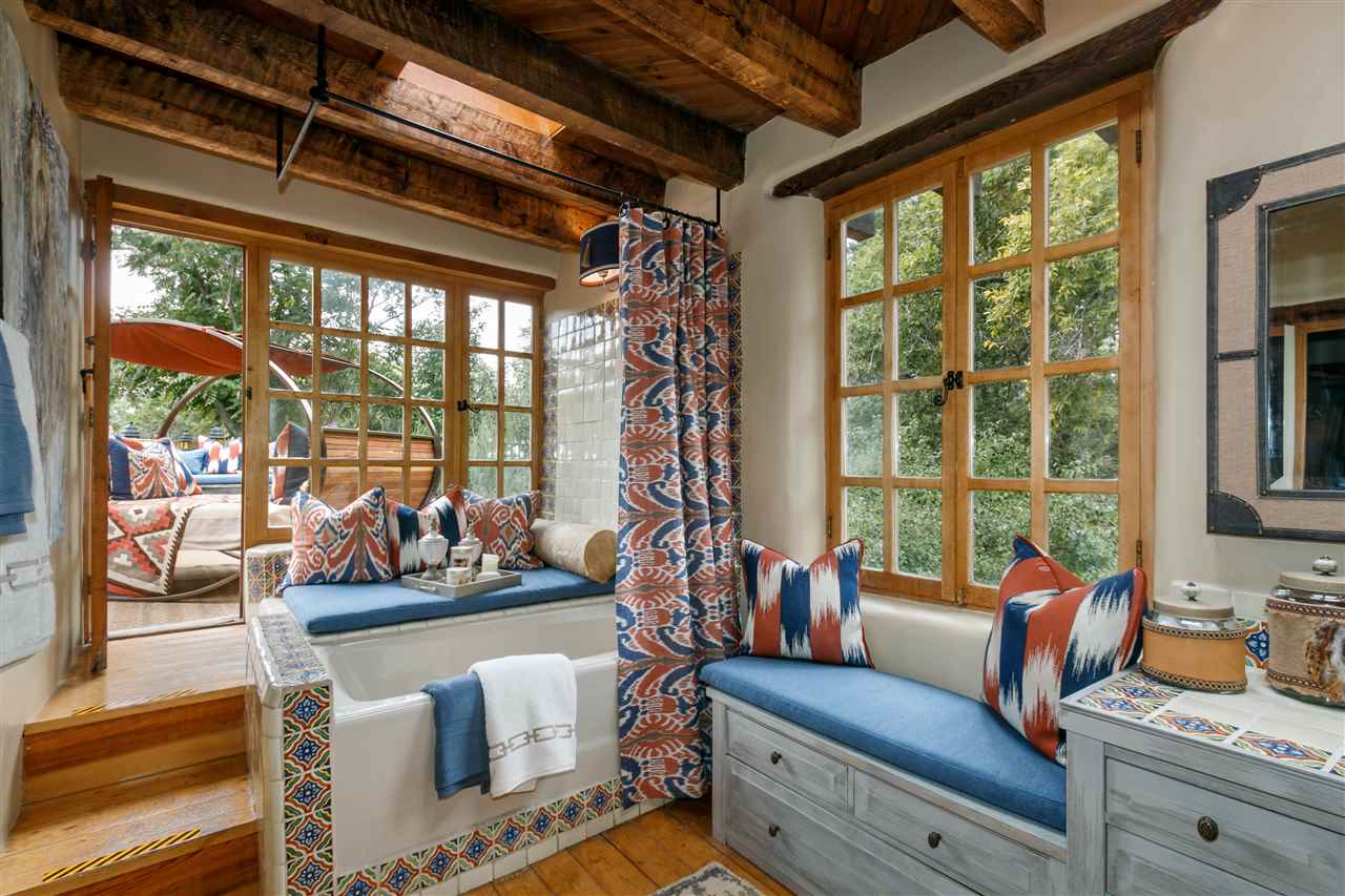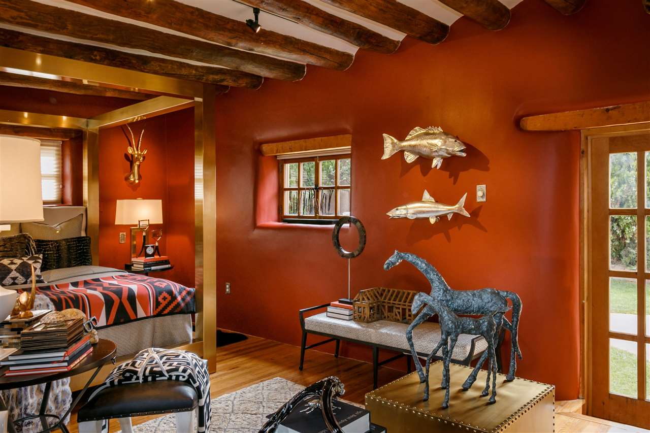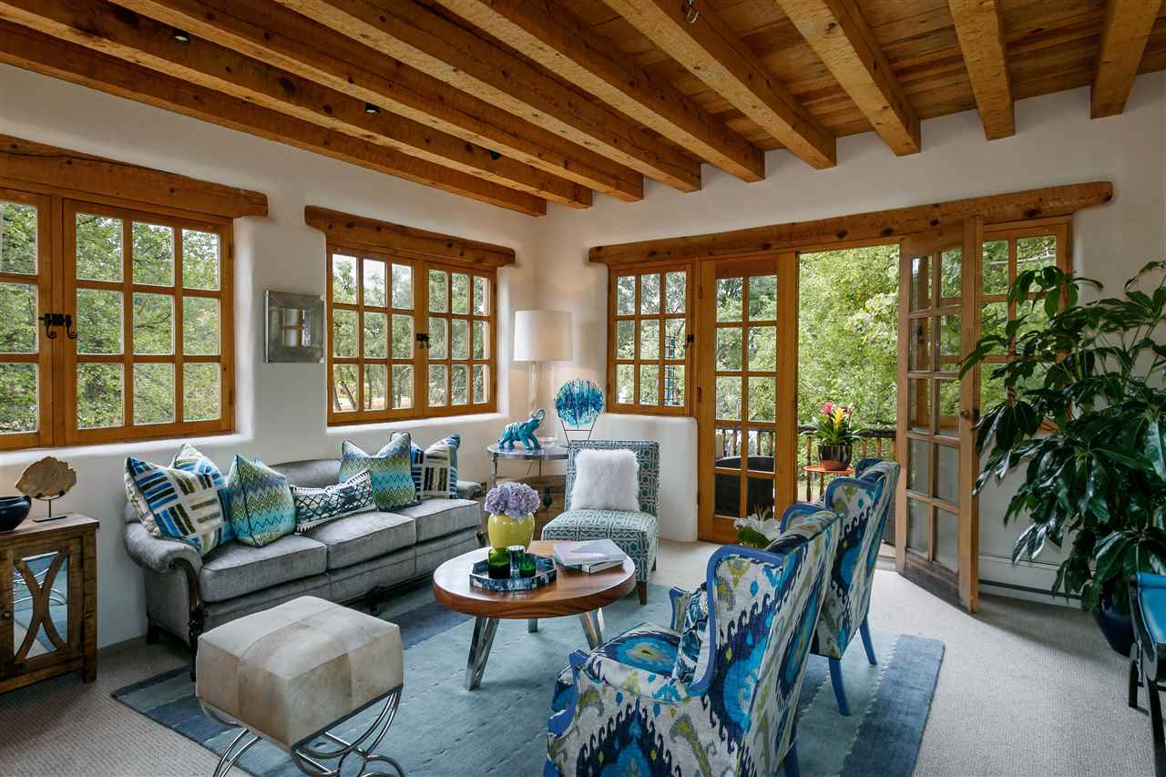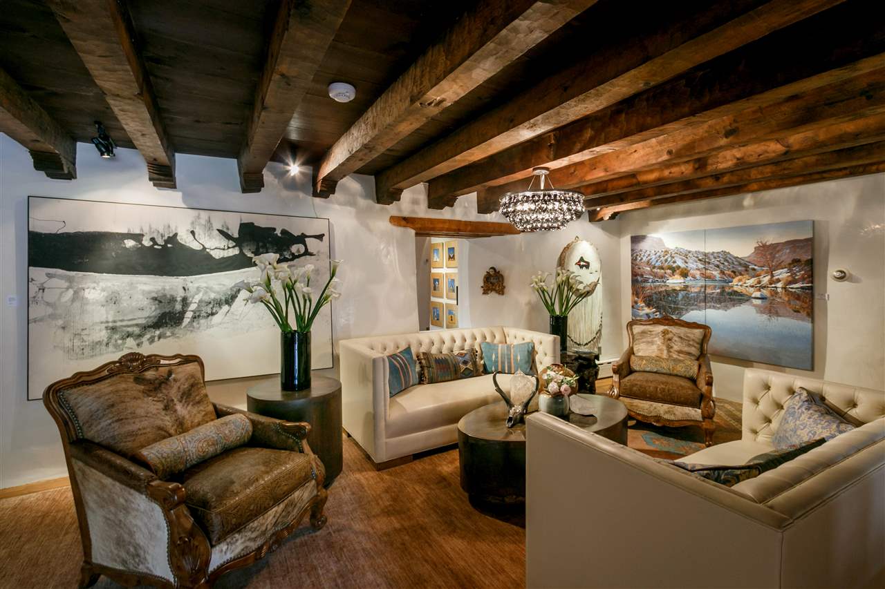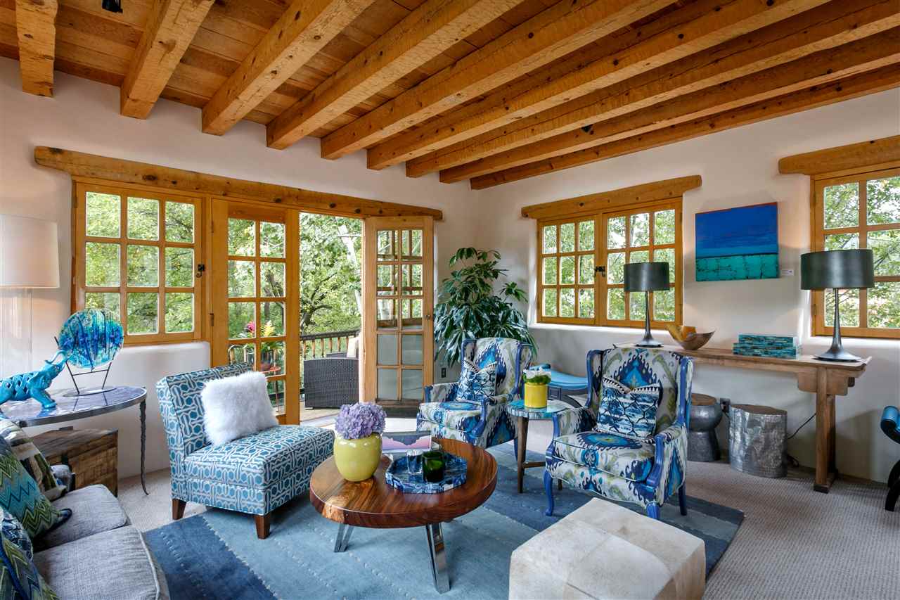 Now known as the Frank Applegate Estate. This was the hub of the folk art movement in New Mexico. One of Santa Fe's oldest historic estate properties originally built in the 1700s, bought by Spainsh army sargeant Francisco de la Pena in 1845 and then in the 1920s by artist Frank Applegate. With its glorious outdoor spaces on 1.74 acres including a beautifully landscaped traditional Placita enclosed courtyard and clay tennis court, this very private family compound in a superb location is a rare offering indeed. There is also a well with an acre foot of water for landscaping purposes.