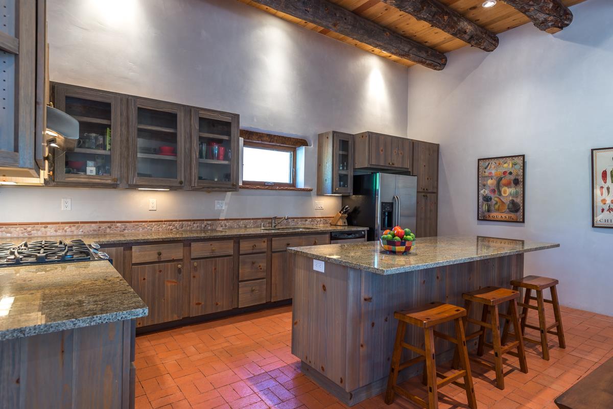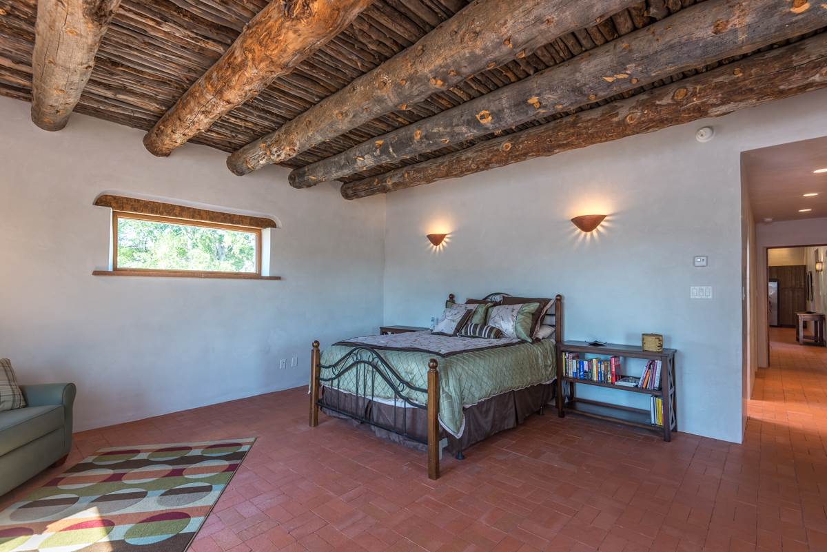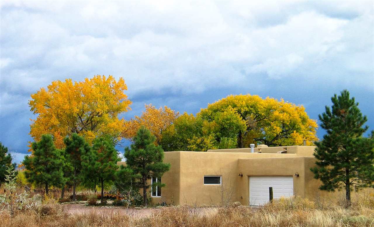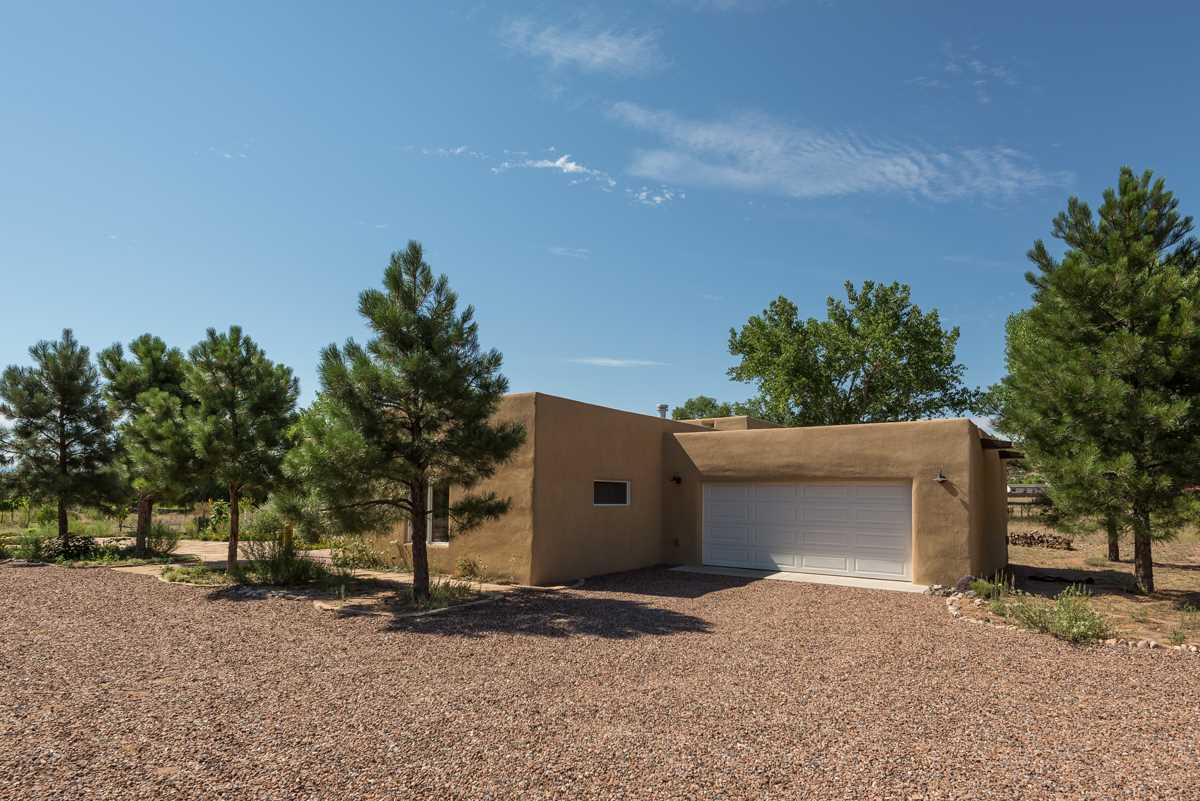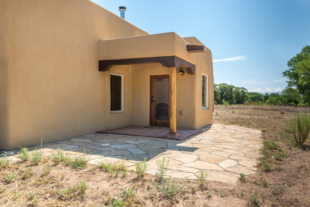 This striking single level Abiquiu residence set on 2.9 acres offers the best of tranquil Northern New Mexico country living, and is perfectly sited to capture views of Sierra Negra and the Sangre de Cristos. The traditional south western design with open concept living features high ceilings with vigas plus easy care brick floors throughout. The graciously sized bedrooms each with its own artistically designed kiva are at opposite ends of the L shaped home. Each room opens onto the sheltered portal for observation of nature and for the enjoyment of outdoor living. The cook's kitchen is complete with granite counter tops, stainless appliances, custom cabinets and spacious island for storage, additional prep surface and informal seating. Other attributes include vineyard with a variety of table and wine grapes, fruit trees, a vegetable garden, mostly on a timed drip system. Lovely gardens with flagstone patio surround the outdoor fire pit. Finished, heated garage could easily be converted to a studio or living space. Surface irrigation rights included. Perfect for entertaining. A fabulous traditional design, yet has all of the conveniences and function of modern technology.