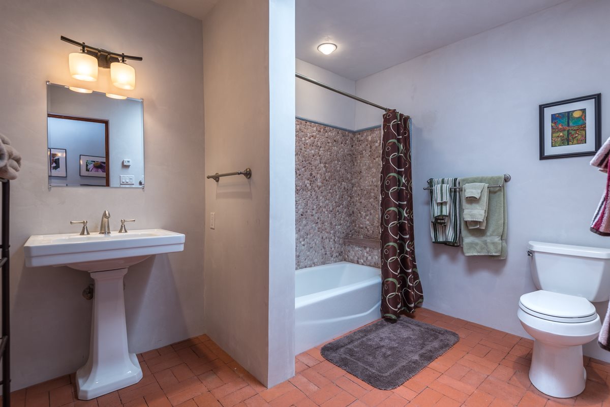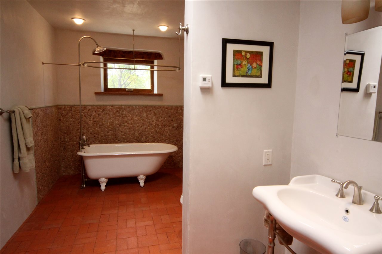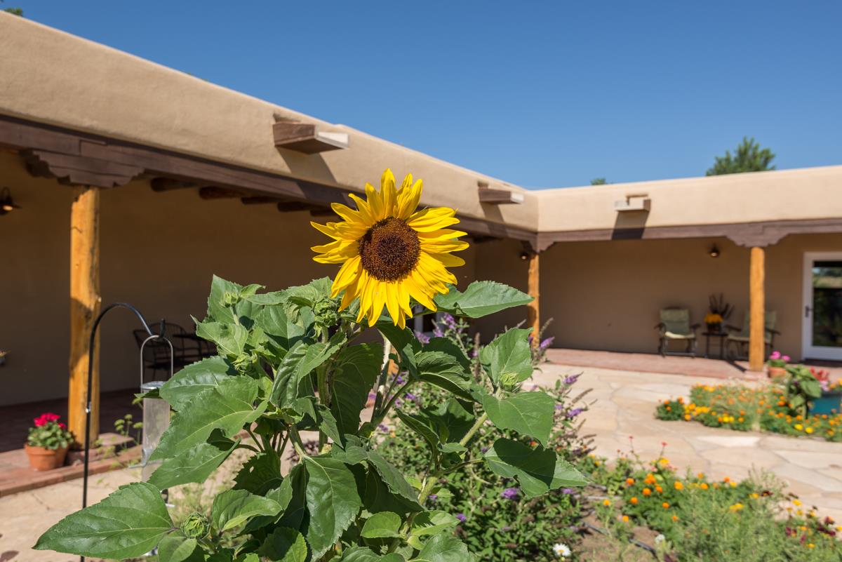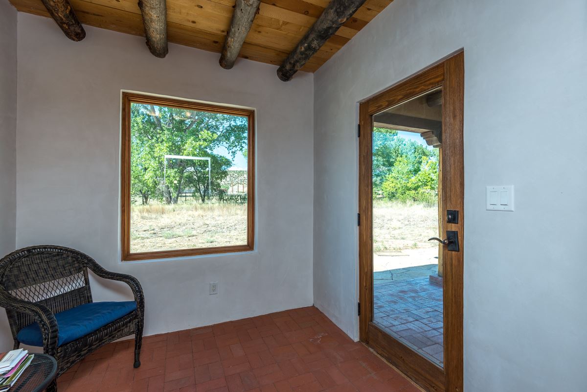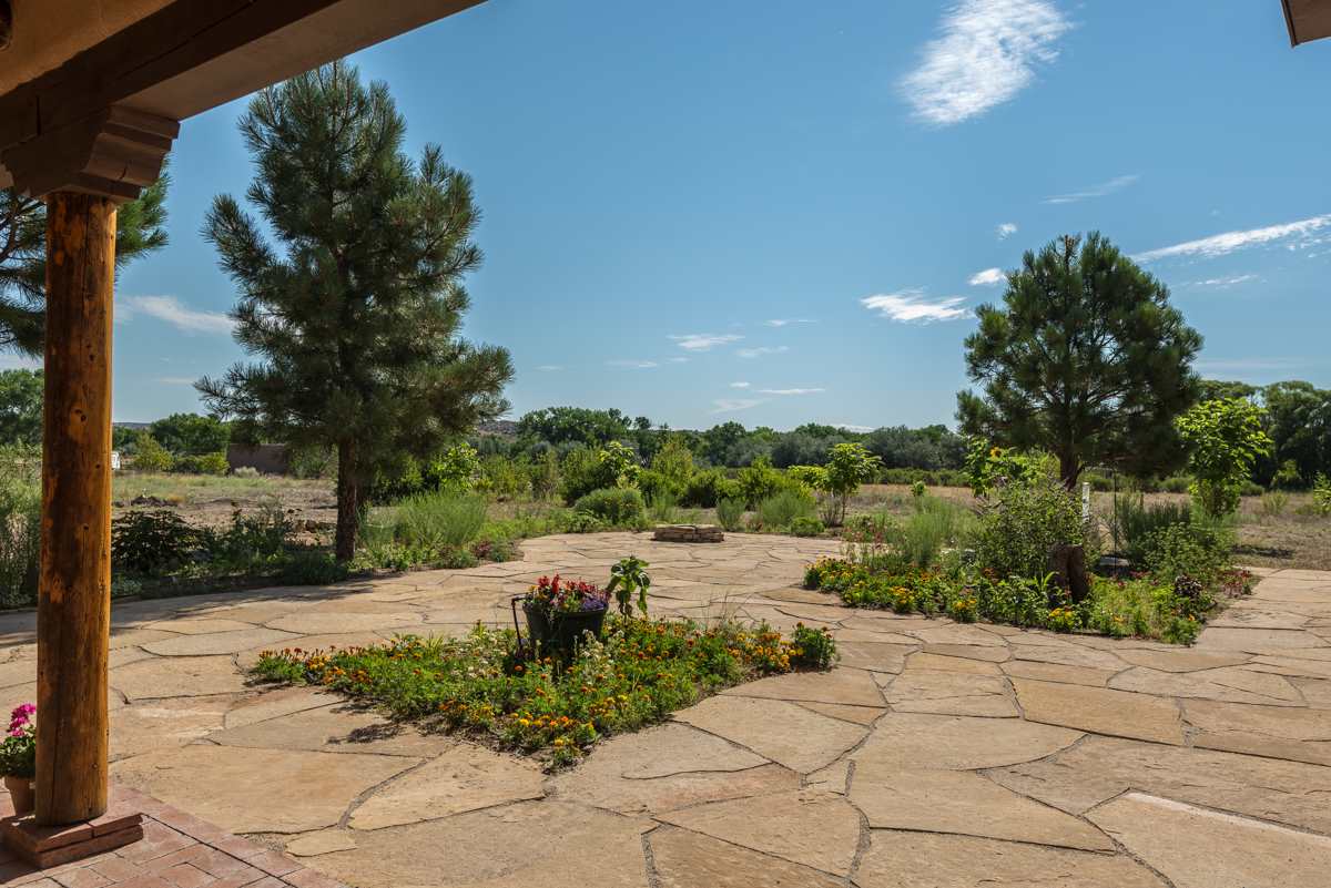 This striking single level Abiquiu residence set on 2.9 acres offers the best of tranquil Northern New Mexico country living, and is perfectly sited to capture views of Sierra Negra and the Sangre de Cristos. The traditional south western design with open concept living features high ceilings with vigas plus easy care brick floors throughout. The graciously sized bedrooms each with its own artistically designed kiva are at opposite ends of the L shaped home. Each room opens onto the sheltered portal for observation of nature and for the enjoyment of outdoor living. The cook's kitchen is complete with granite counter tops, stainless appliances, custom cabinets and spacious island for storage, additional prep surface and informal seating. Other attributes include vineyard with a variety of table and wine grapes, fruit trees, a vegetable garden, mostly on a timed drip system. Lovely gardens with flagstone patio surround the outdoor fire pit. Finished, heated garage could easily be converted to a studio or living space. Surface irrigation rights included. Perfect for entertaining. A fabulous traditional design, yet has all of the conveniences and function of modern technology.