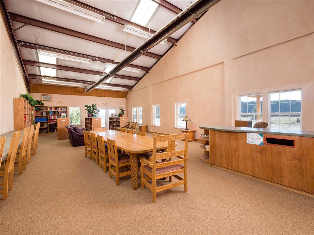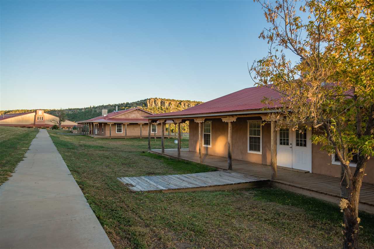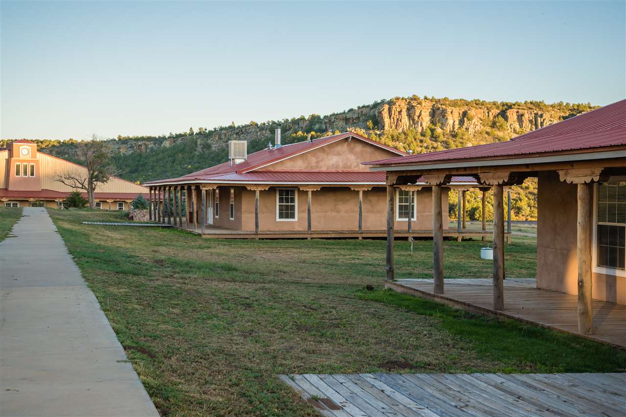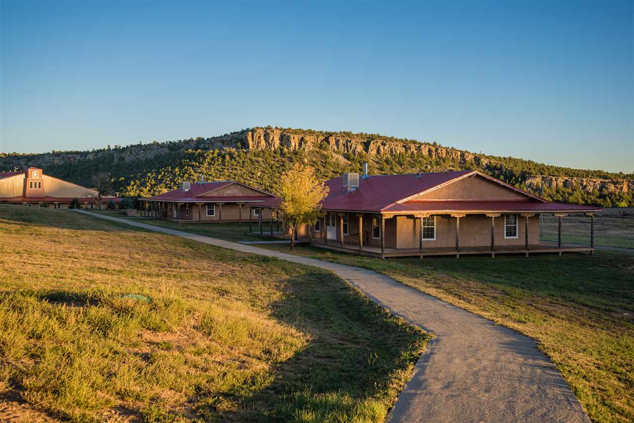 Extraordinary property 20 miles north of Las Vegas, NM, perfectly suited for a school, ranch, or retreat, ready for its next reincarnation. 407 acres with over 80,000 heated sq ft of buildings including a gymnasium, 2 residences, cabins, stables, a dining hall with full commercial kitchen, an adobe rec hall with pool tables, a barber shop, soda fountain and post office; 3 wells, artesian spring, natural gas, stables. 2 buildings on the National Historic Register, elk, ponderosa pines, and its own zip code! Just 5 miles east of I-25 on paved county maintained roads.