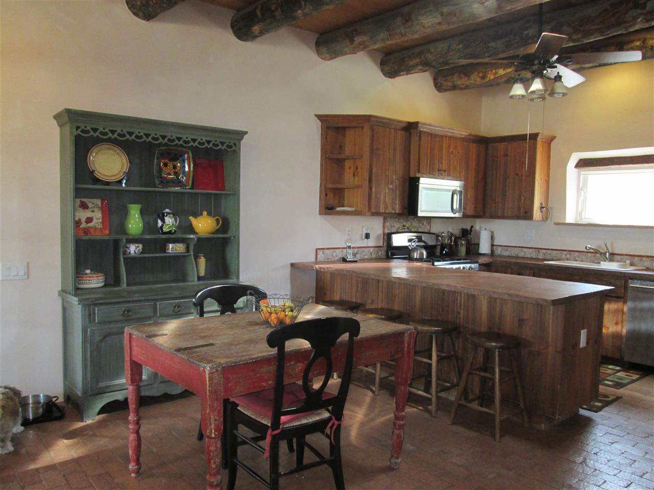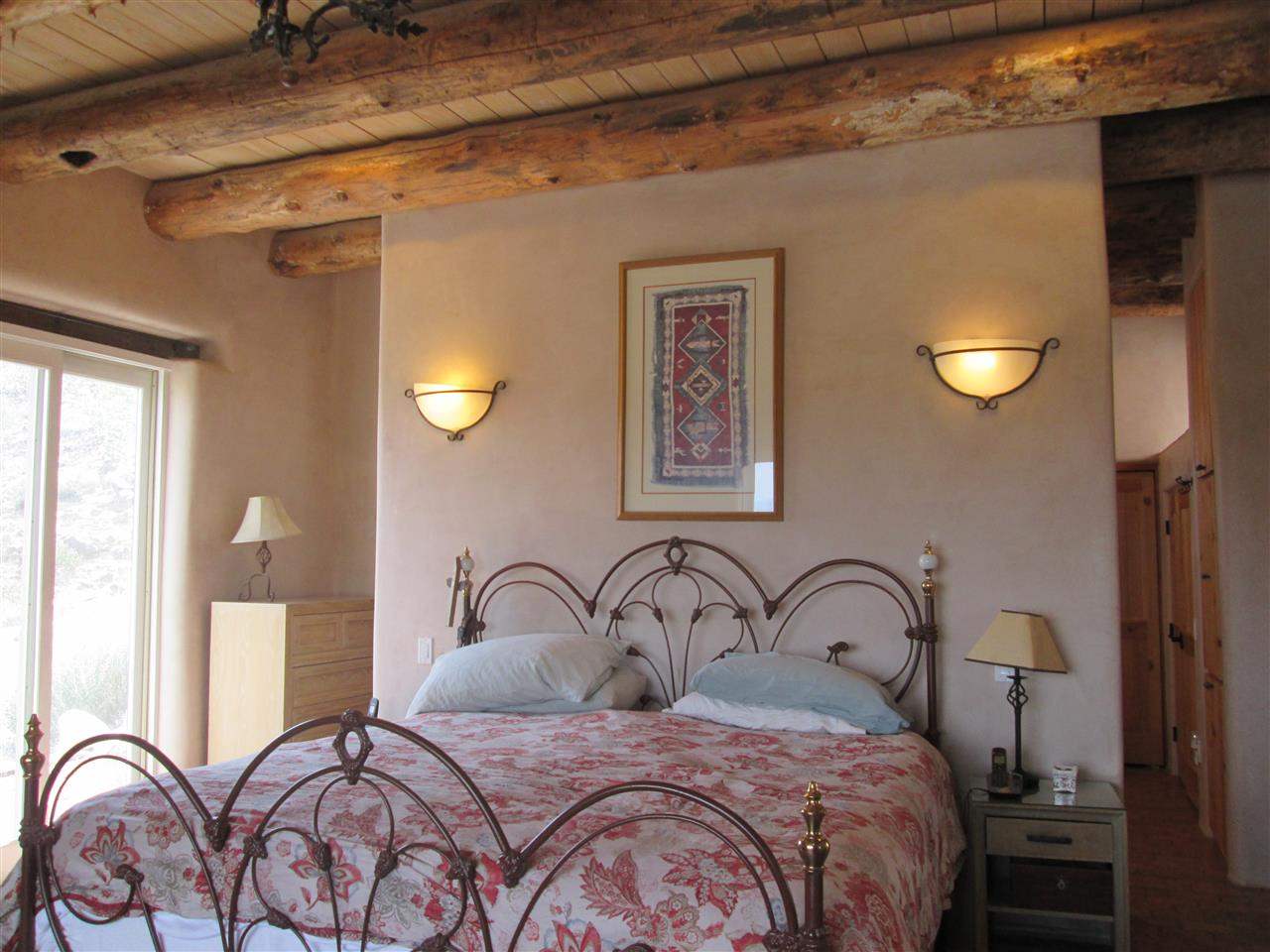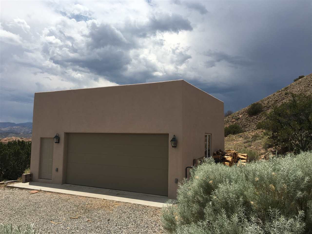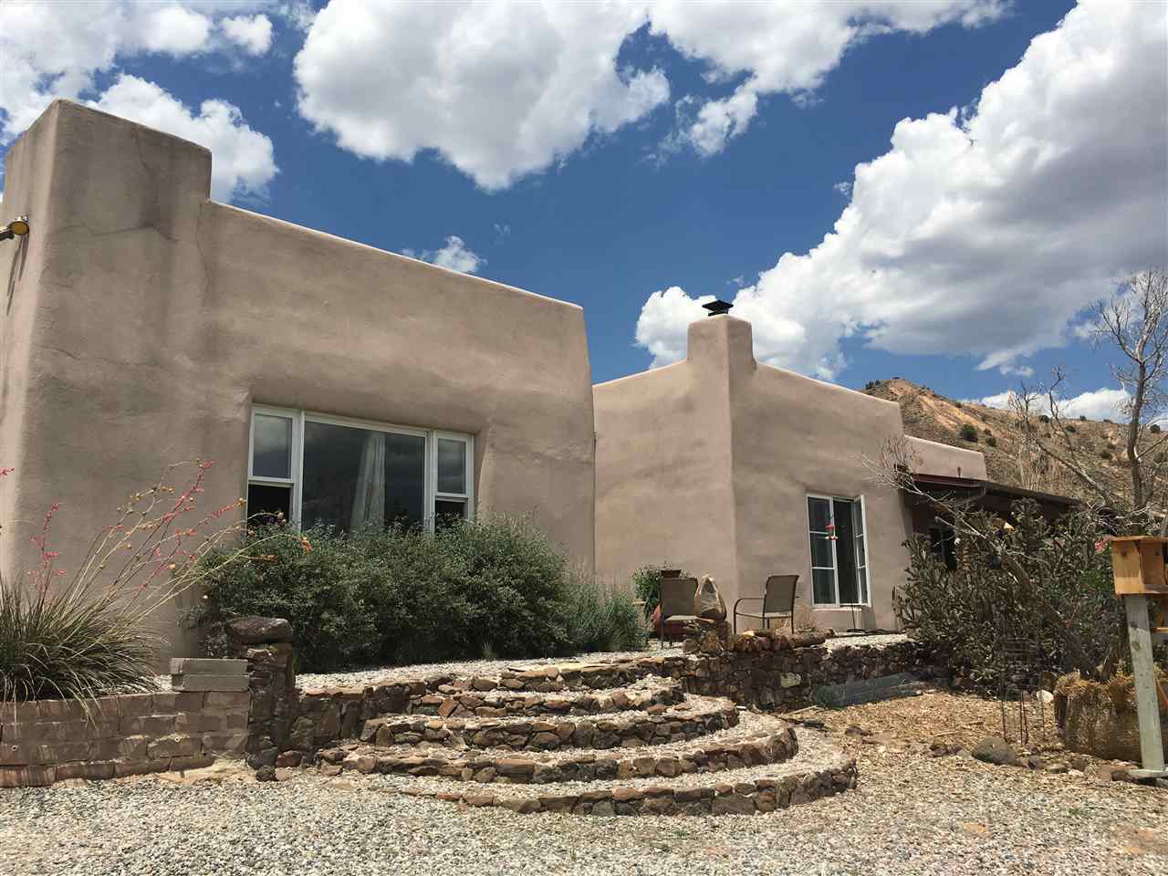 Own this lovely adobe home (2,486 sq ft) on 12.03 acres with landscaping around the house and its own private box canyon that borders the Carson National Forest. This house is classic Northern New Mexico with its rustic vigas, brick floors and beautifully plastered walls. Open living, dining and kitchen area separate the guest bedrooms/bathrooms from the Master Suite creating a great space for entertaining. The wraparound portal looks out toward the Sangre de Cristo and Jemez Mountains and provides a great spot to enjoy the light and beauty that surrounds Abiquiu. There is also a spacious detached garage (600 sq ft) with an additional workshop, a vegetable garden, and an area fenced for horses. So whether you enjoy hiking, riding, or are a lover of beautiful outdoor landscapes, this property is for you.