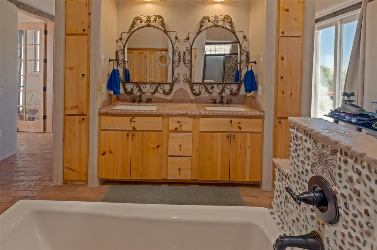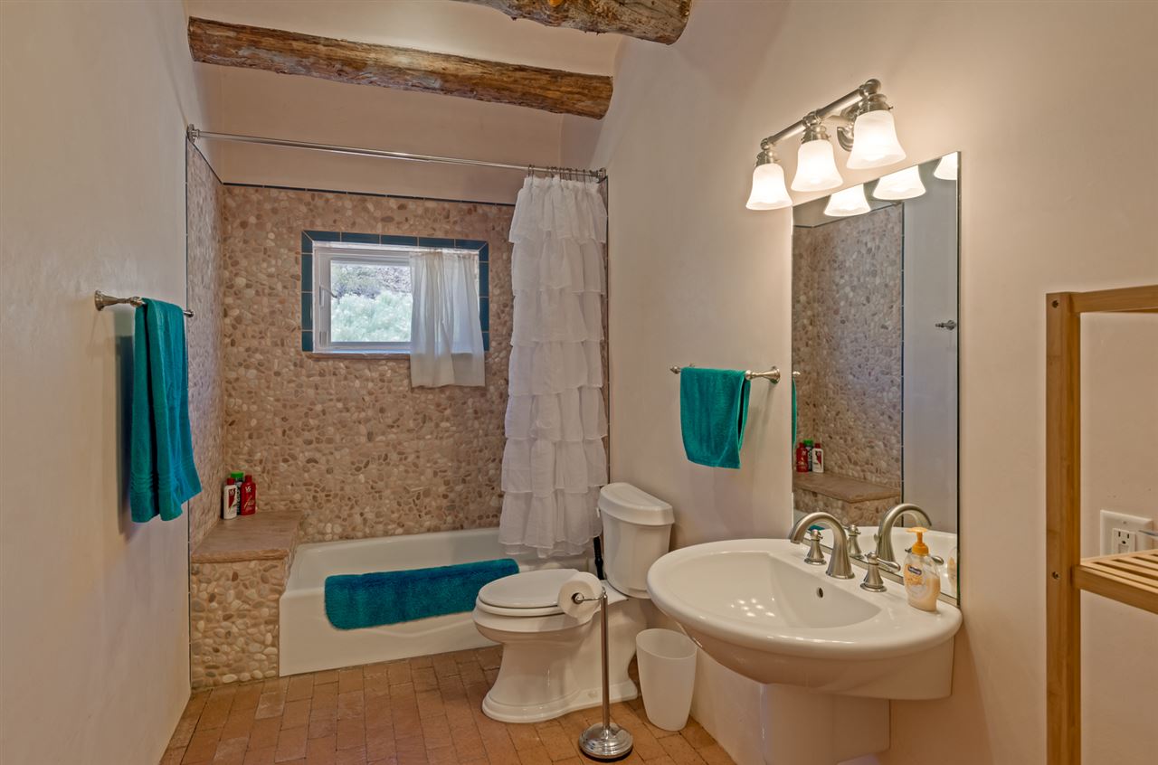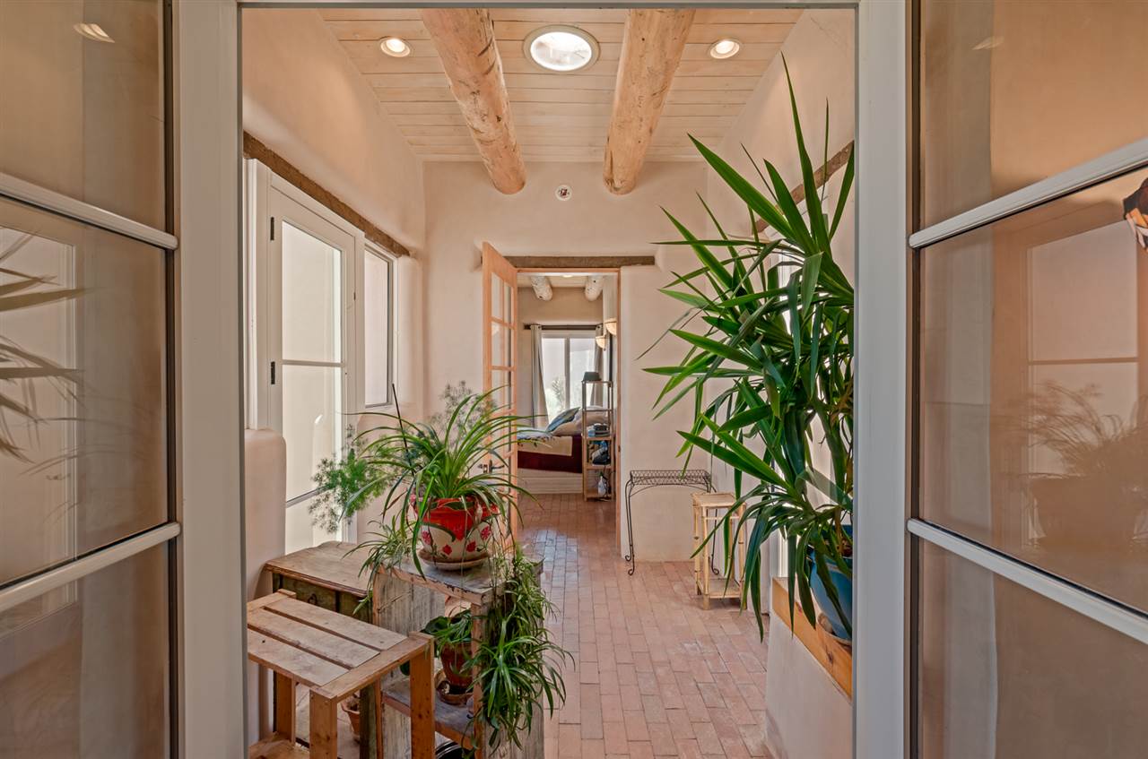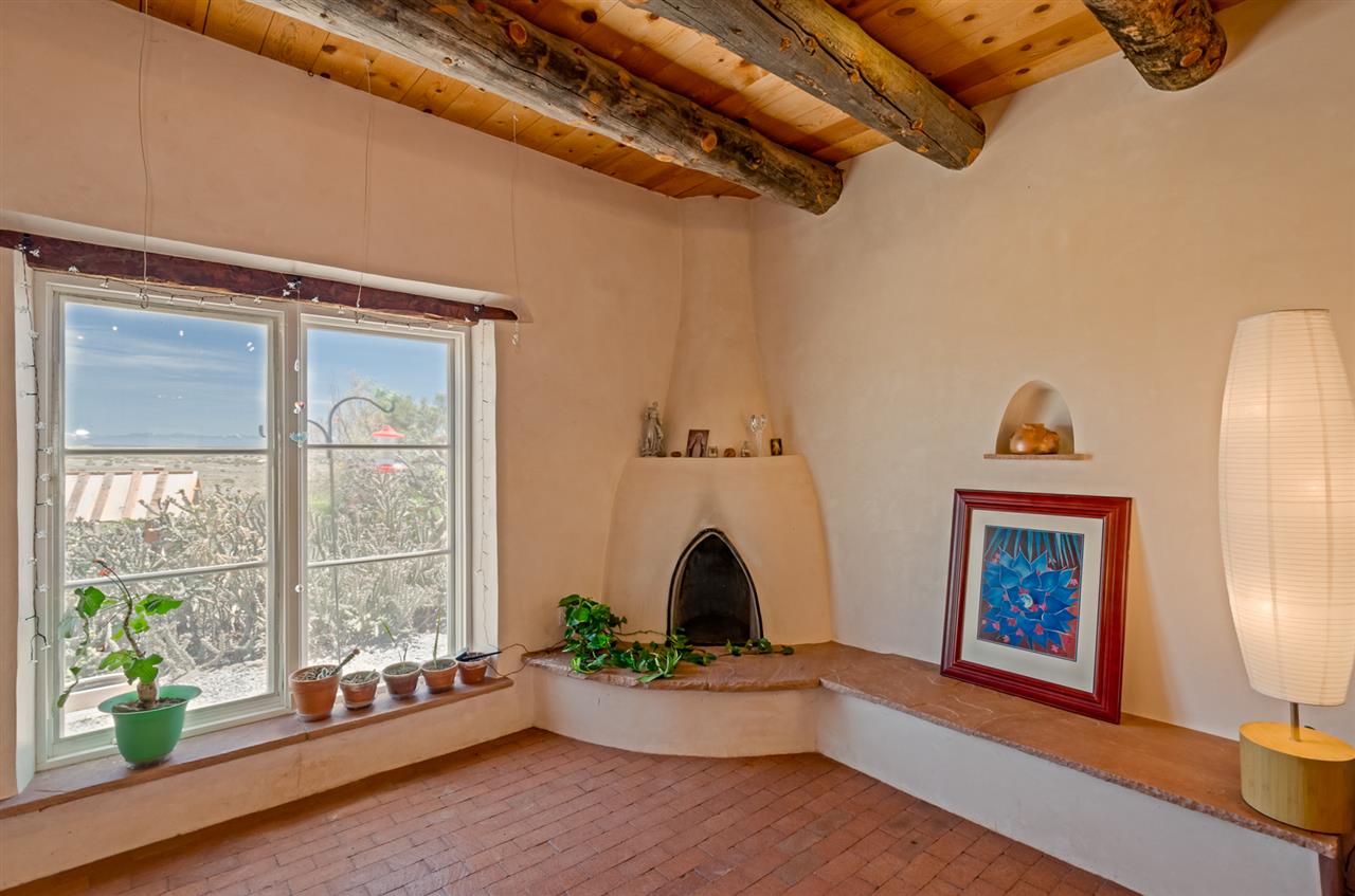 Own this lovely adobe home (2,486 sq ft) on 12.03 acres with landscaping around the house and its own private box canyon that borders the Carson National Forest. This house is classic Northern New Mexico with its rustic vigas, brick floors and beautifully plastered walls. Open living, dining and kitchen area separate the guest bedrooms/bathrooms from the Master Suite creating a great space for entertaining. The wraparound portal looks out toward the Sangre de Cristo and Jemez Mountains and provides a great spot to enjoy the light and beauty that surrounds Abiquiu. There is also a spacious detached garage (600 sq ft) with an additional workshop, a vegetable garden, and an area fenced for horses. So whether you enjoy hiking, riding, or are a lover of beautiful outdoor landscapes, this property is for you.