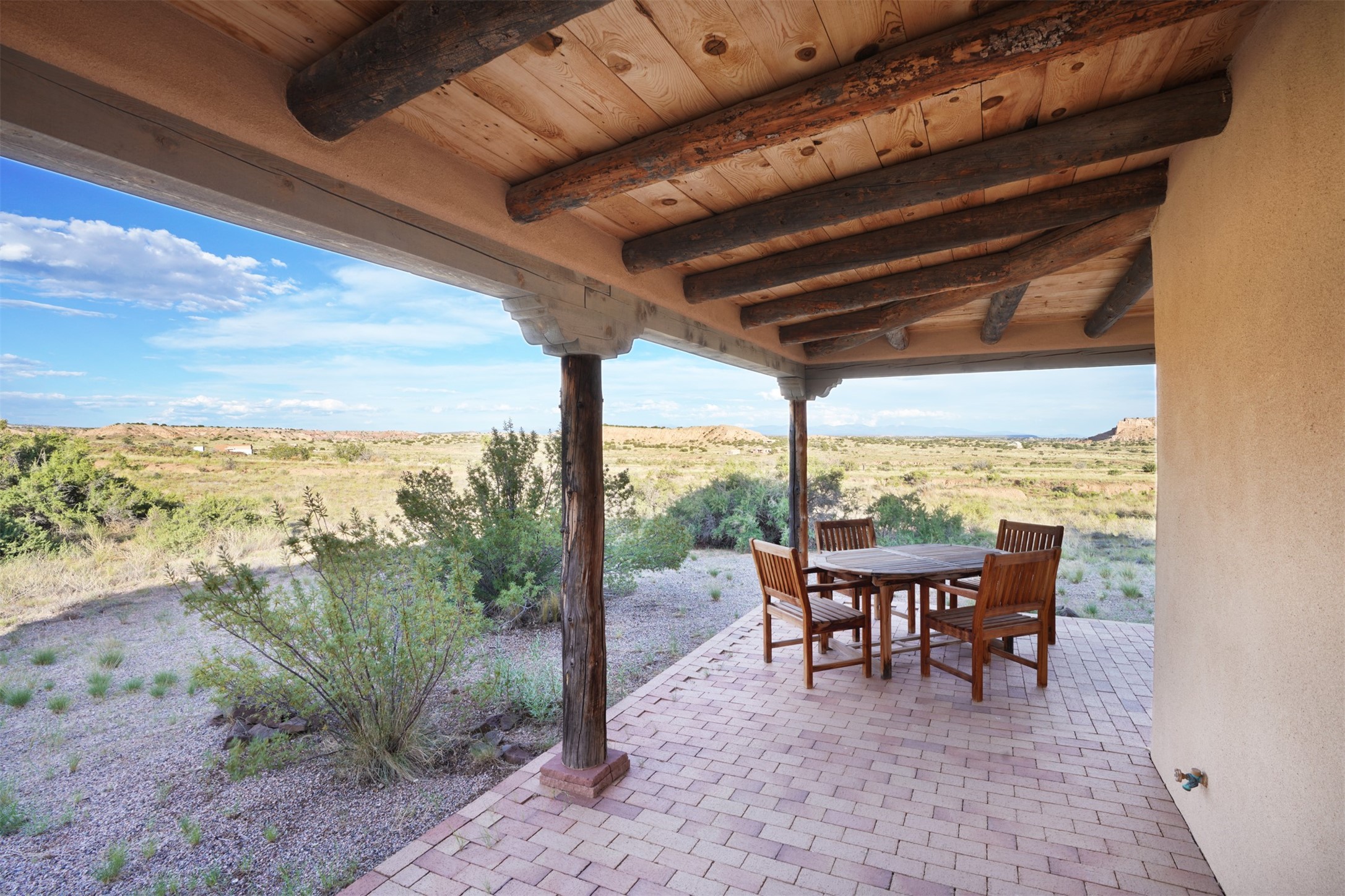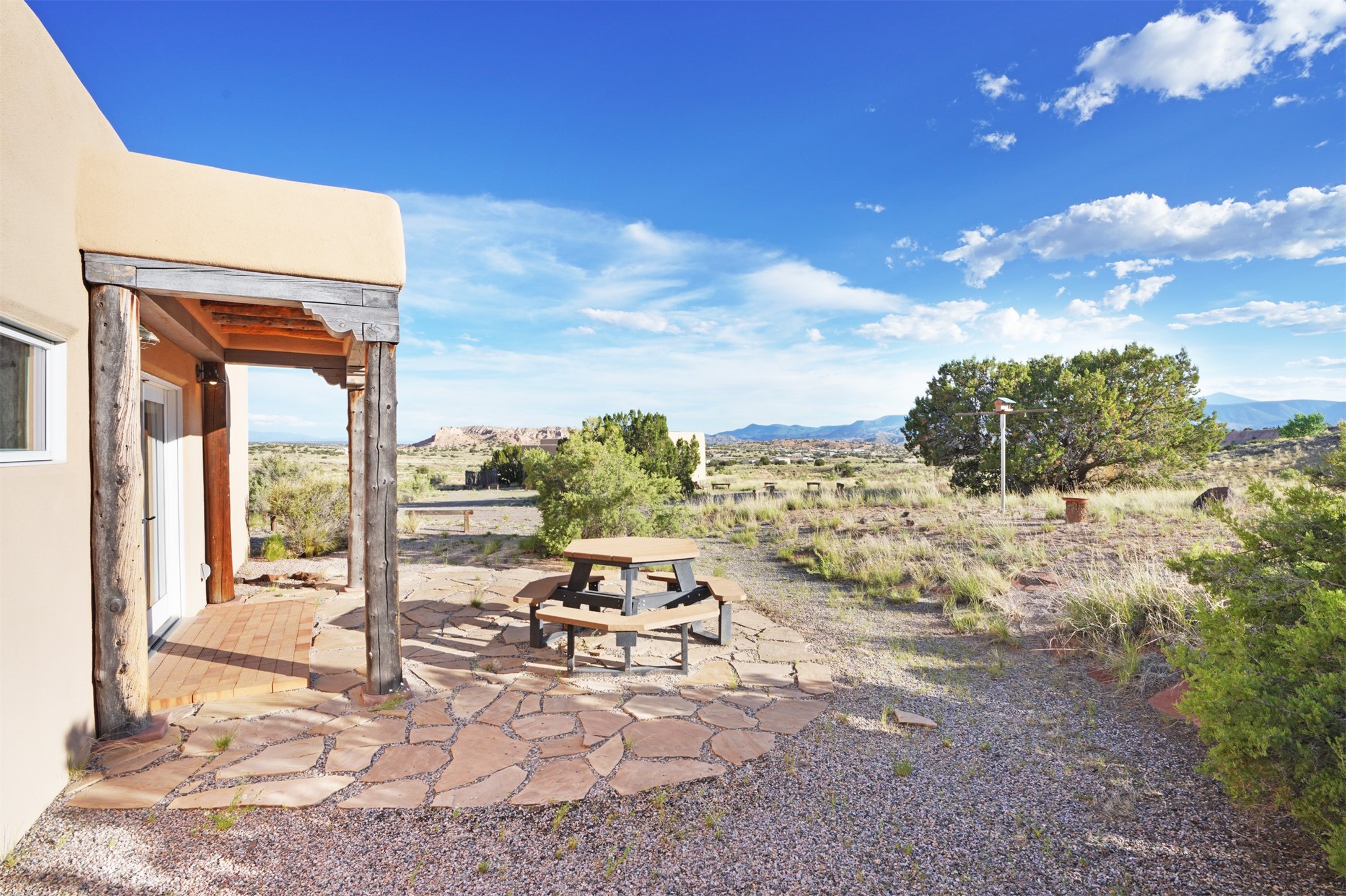 A true Abiquiu adobe on over 22 acres is now available! This two-bedroom, two-bathroom home highlights classic northern New Mexico style with vigas, brick floors, custom plastered walls, and adobe construction. A detached adobe casita with a one-car carport adds versatility for guests or creative use. The wraparound portal offers stunning views of the Sangre de Cristo and Jemez Mountain ranges. Backing up to the Carson National Forest, the property provides direct access to nature, offering opportunities for hiking and horseback riding right from your doorstep. Conveniently located, the property is just 10 minutes from Abiquiu, just over an hour from both Santa Fe and Taos, and about an hour from Los Alamos.