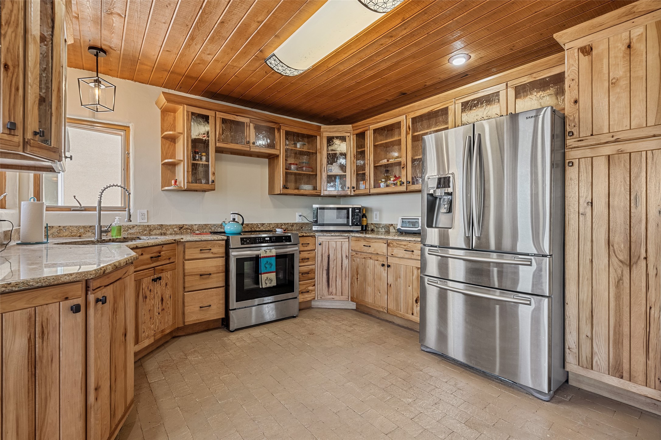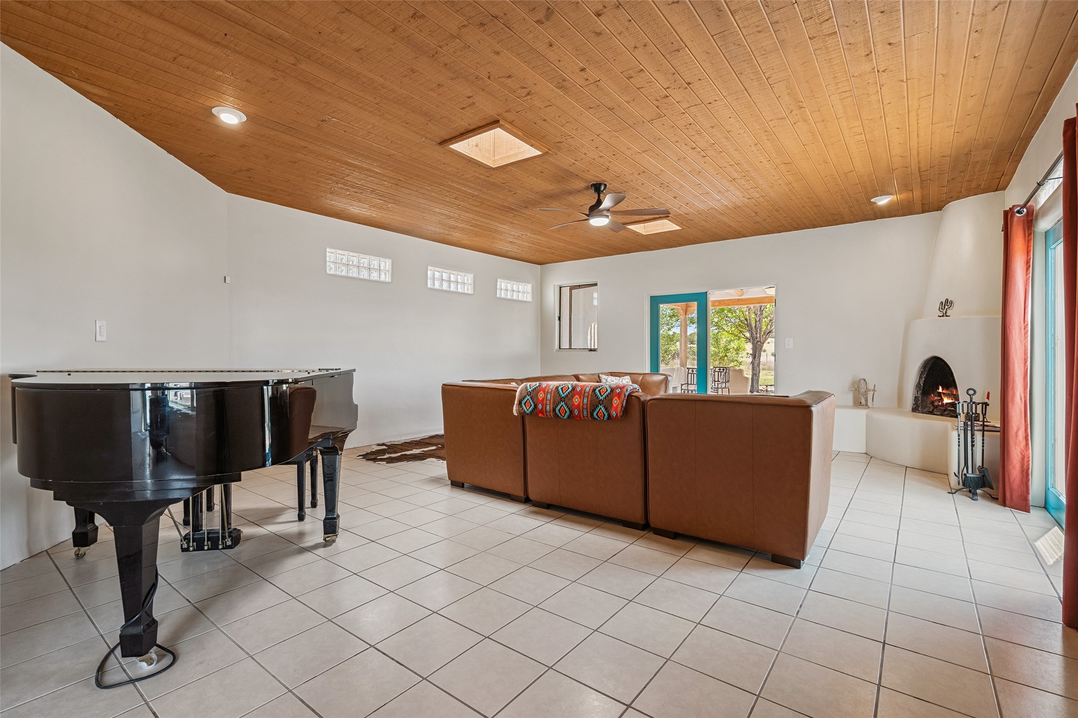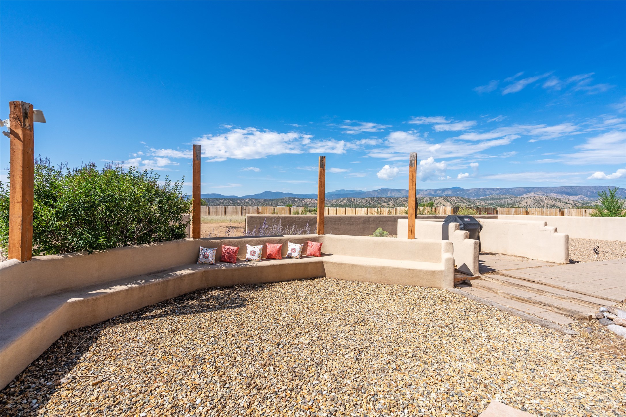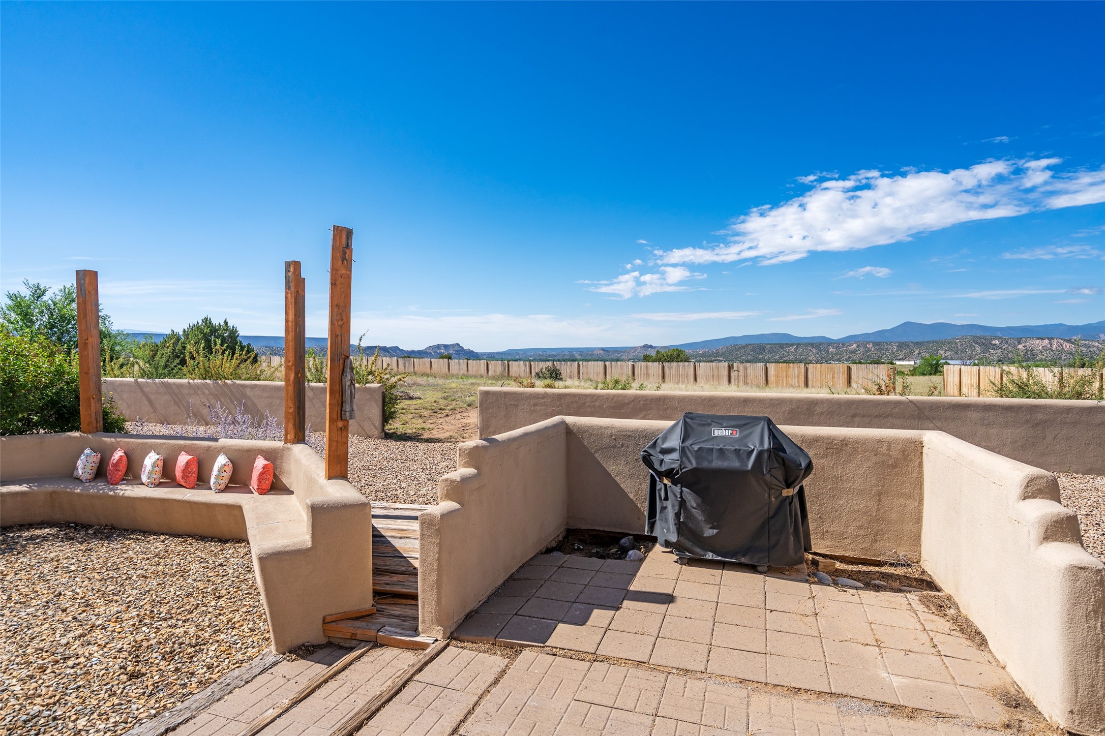 Centrally located between Los Alamos, Santa Fe, and Taos, this spacious 4-bed, 4-bath home on 5 acres offers peaceful family living in the heart of Medanales. With horses welcome and Abiquiu Lake and national forest lands just minutes away, it's an ideal setting for those who love space, nature, and quiet. Inside, classic Southwestern style shines through with brick floors, beamed ceilings, multiple wood stoves, two kiva fireplaces, and cozy radiant heat. With newly remodeled custom baths featuring walk-in showers, a generous kitchen, separate dining room, and a dedicated office, this home perfectly suited for both family life and remote work. Multiple courtyards provide serene outdoor living spaces, while a large covered portal with a Kiva fireplace invites year-round enjoyment. Sweeping mountain views complete this exceptional property--offering a private, charming retreat with room to roam.