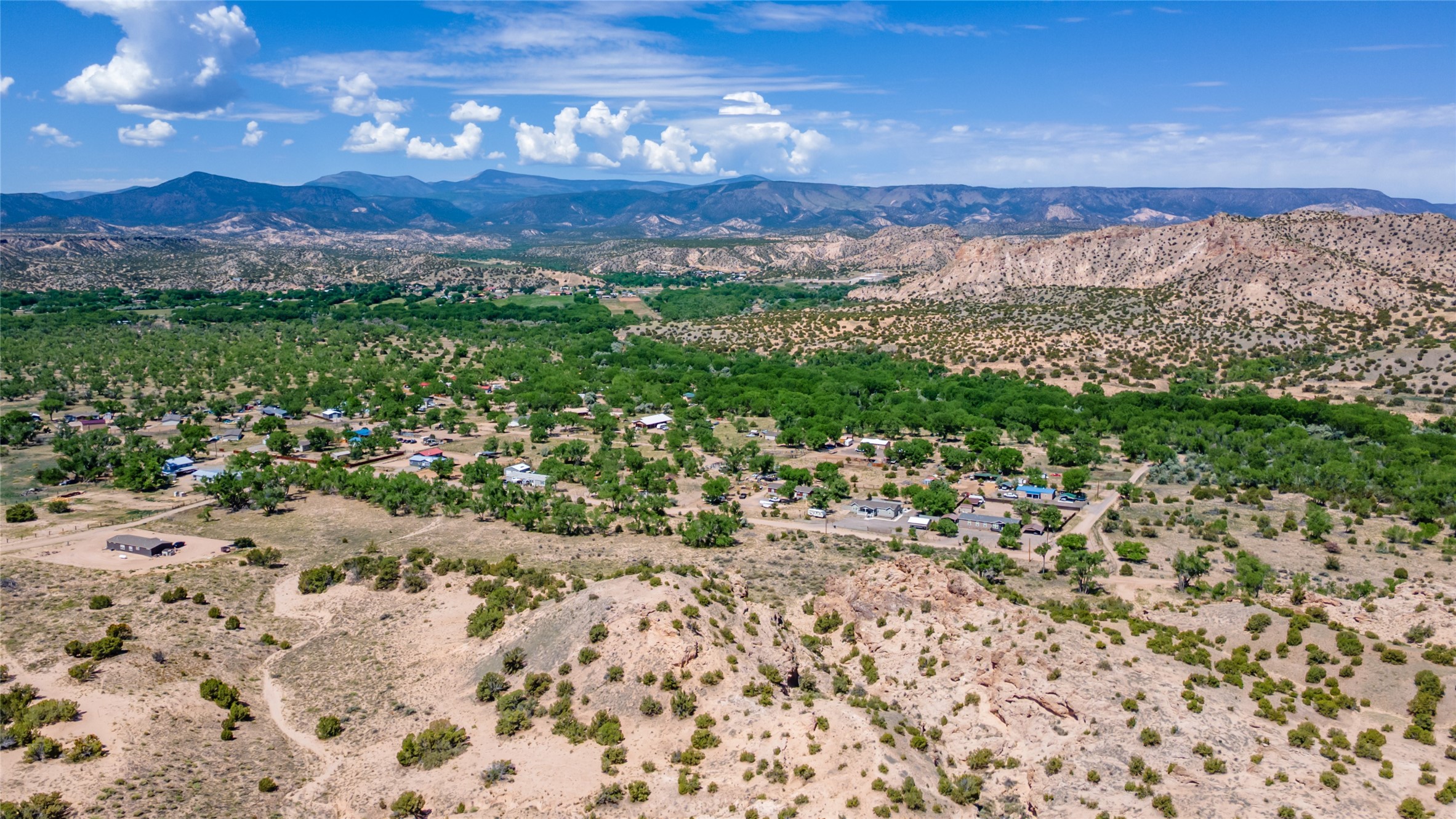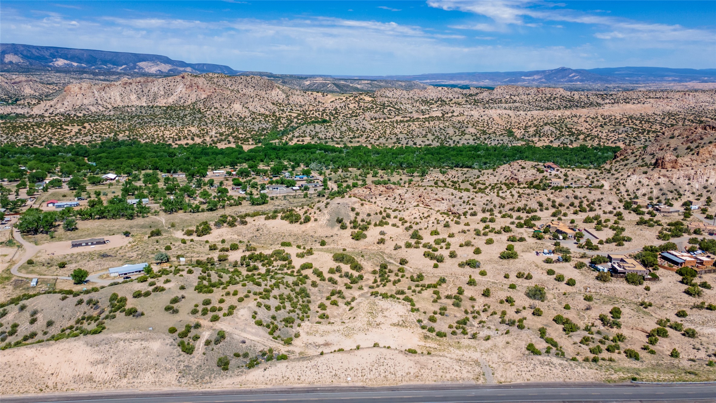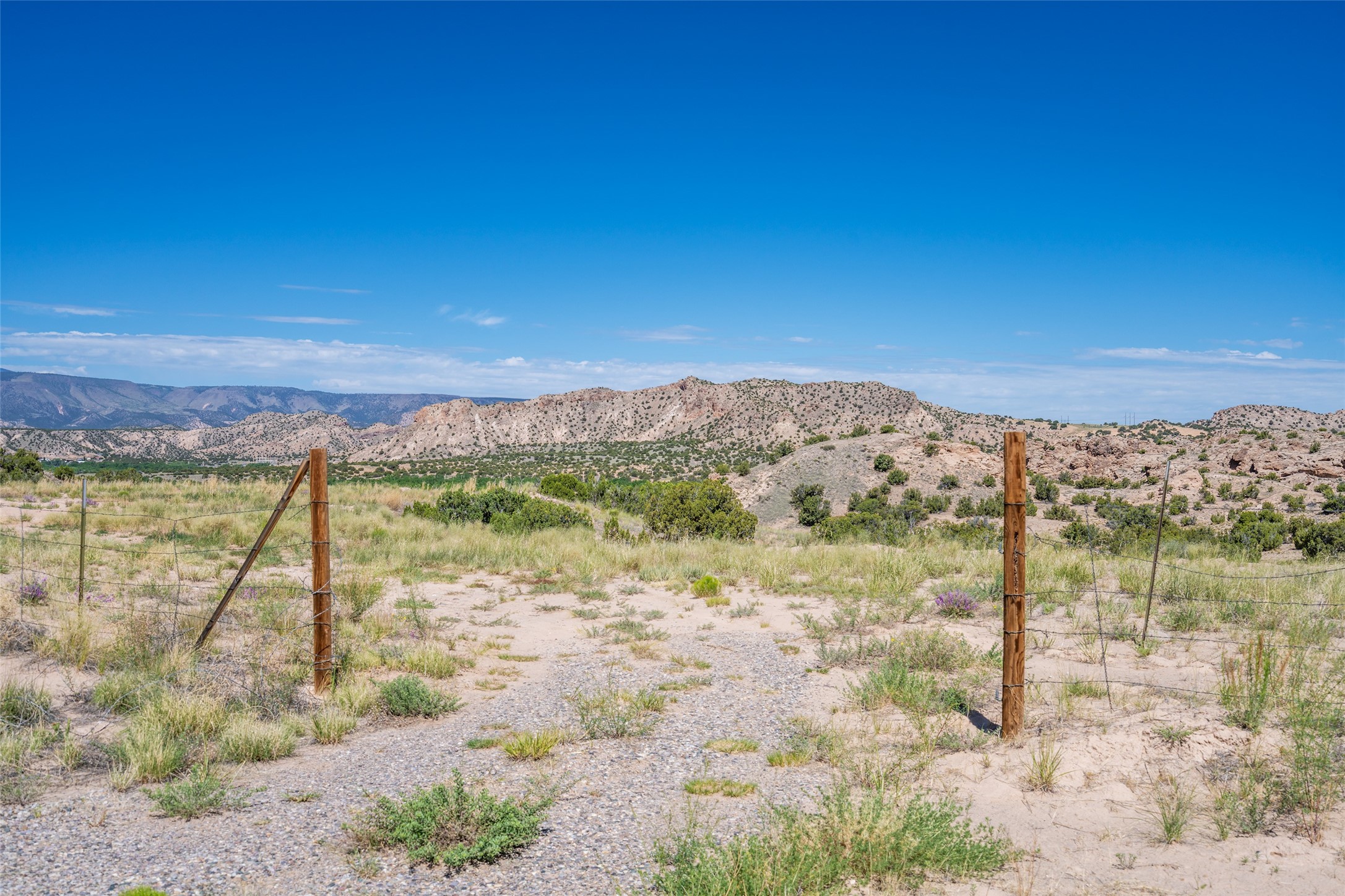 Amazing views without having a bumpy, out of the way trek up a mountain. This kind of opportunity doesn't come very often. Build your dream home, wake up to spectacular sights over the valley, but still have access directly off highway 285, and still feel secluded because of the hills on either side of the entrance which give buffers between home and highway. Perfection! The higher area has already been flattened in preparation for building. This point overlooks arroyos, valleys. and mountain formations. Electricity isn't very far away. Access directly off 285 will make other utilities easier to bring in as well. Not a far commute to Los Alamos. Two lots being sold together for a total of 3.93 acres.