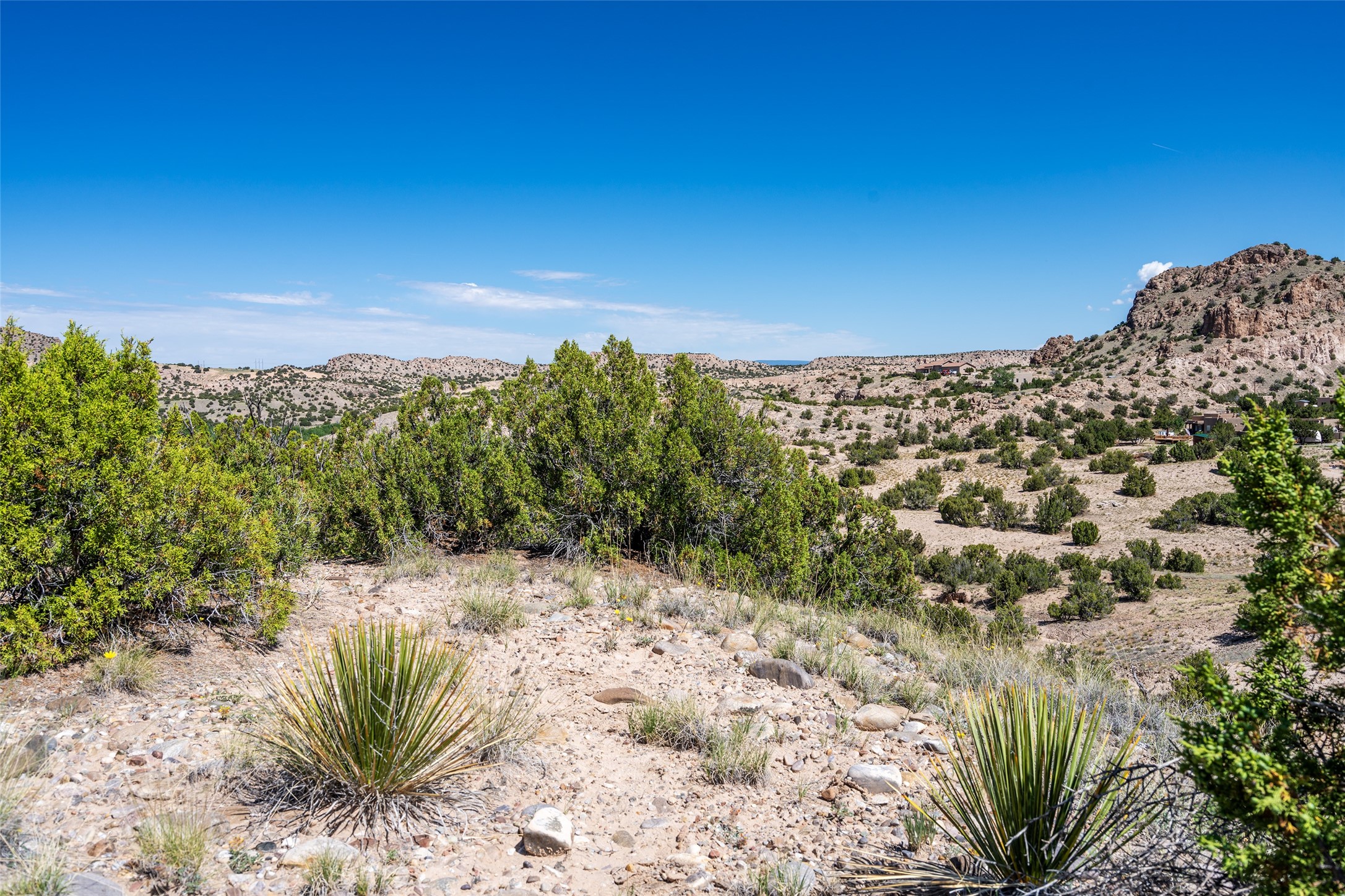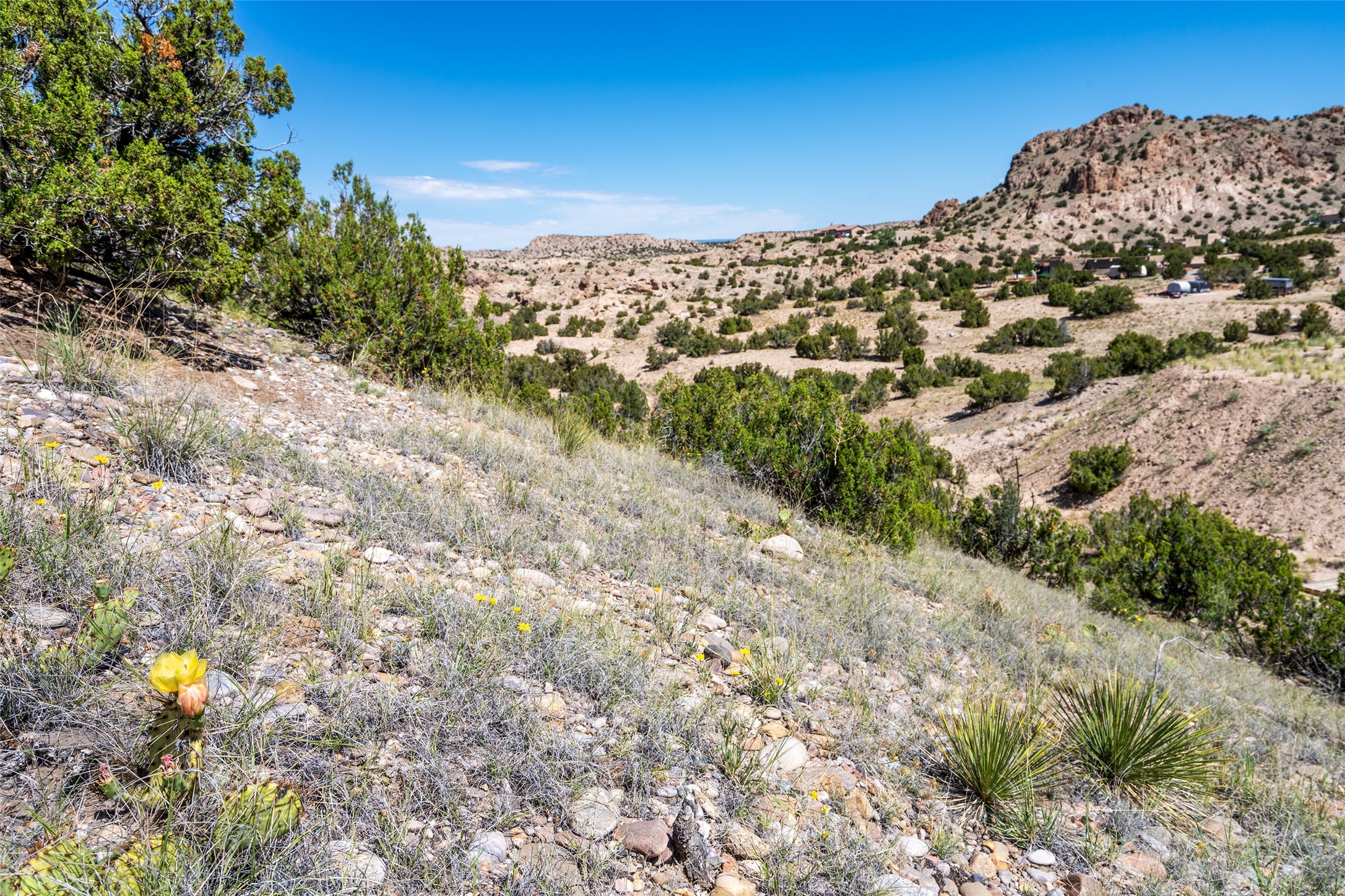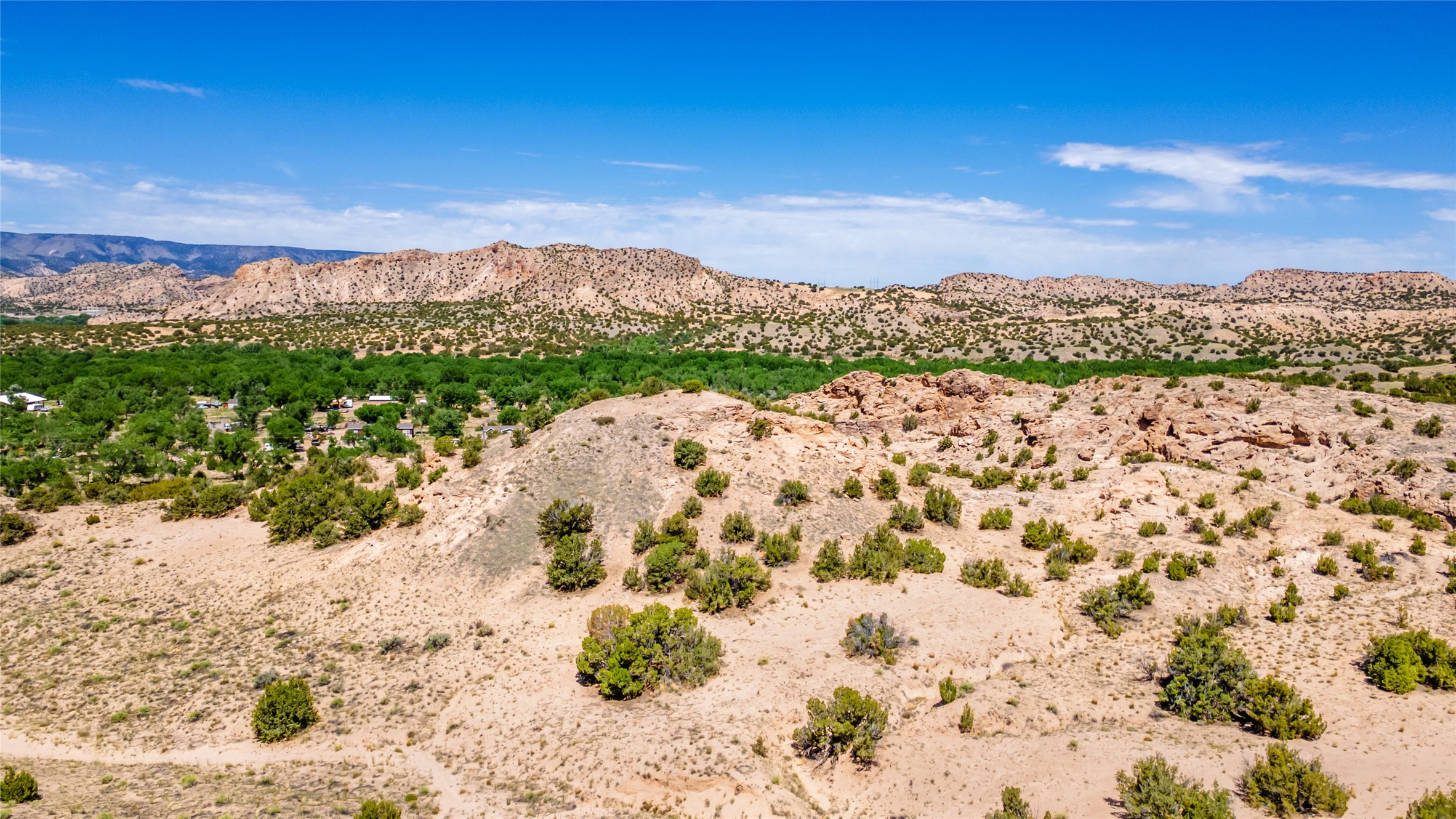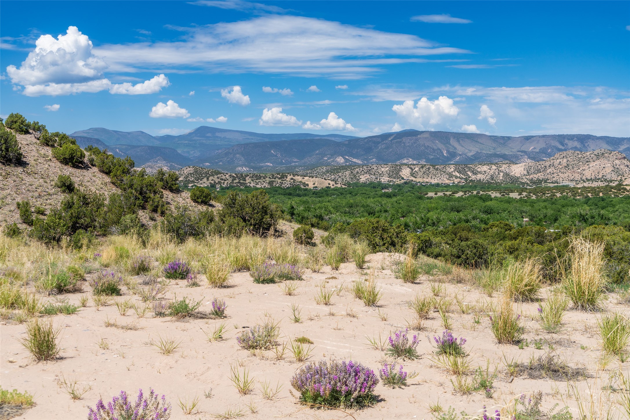 Amazing views without having a bumpy, out of the way trek up a mountain. This kind of opportunity doesn't come very often. Build your dream home, wake up to spectacular sights over the valley, but still have access directly off highway 285, and still feel secluded because of the hills on either side of the entrance which give buffers between home and highway. Perfection! The higher area has already been flattened in preparation for building. This point overlooks arroyos, valleys. and mountain formations. Electricity isn't very far away. Access directly off 285 will make other utilities easier to bring in as well. Not a far commute to Los Alamos. Two lots being sold together for a total of 3.93 acres.