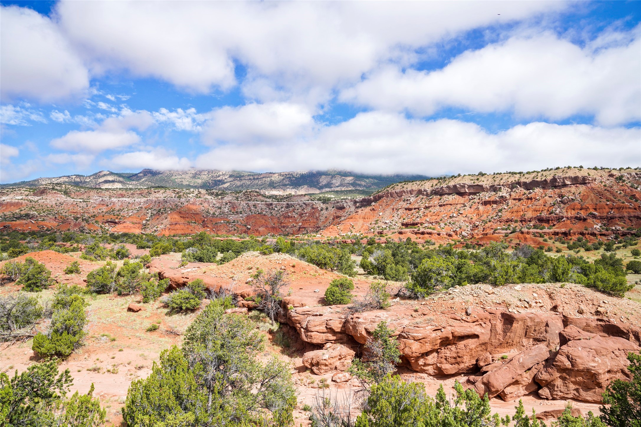 Red Valley Ranch spans 500 acres of vivid red rock formations, sculpted hoodoos, and layered sandstone that tell the story of northern New Mexico's geologic past. The property has a well and public electricity, making it ready for thoughtful development. A conservation easement ensures the land remains intact, and it adjoins other large, non-dividable tracts that protect long-term privacy and open views. Several building areas lend themselves to distinctive architecture and equestrian use, with open ground perfect for riding. The property borders over 50,000 acres of the Rio Chama River Canyon Wilderness and connects to New Mexico State Lands and the Santa Fe National Forest, offering seamless access to hiking, horseback riding, and exploring. From the top of nearby Mesa Alta, you'll take in panoramic views of Cerro Pedernal, the Rio Puerco, Ghost Ranch, and Abiquiu Lake--scenery that has drawn artists and explorers for generations. Spring and summer monsoons bring the high desert to life, with wildflowers like Indian paintbrush, sego lily, and others blooming across the landscape. Elk, deer, and other wildlife regularly move through this untamed terrain, crossing in from the surrounding wilderness. Red Valley Ranch offers a rare balance of privacy, access, and connection to the land.