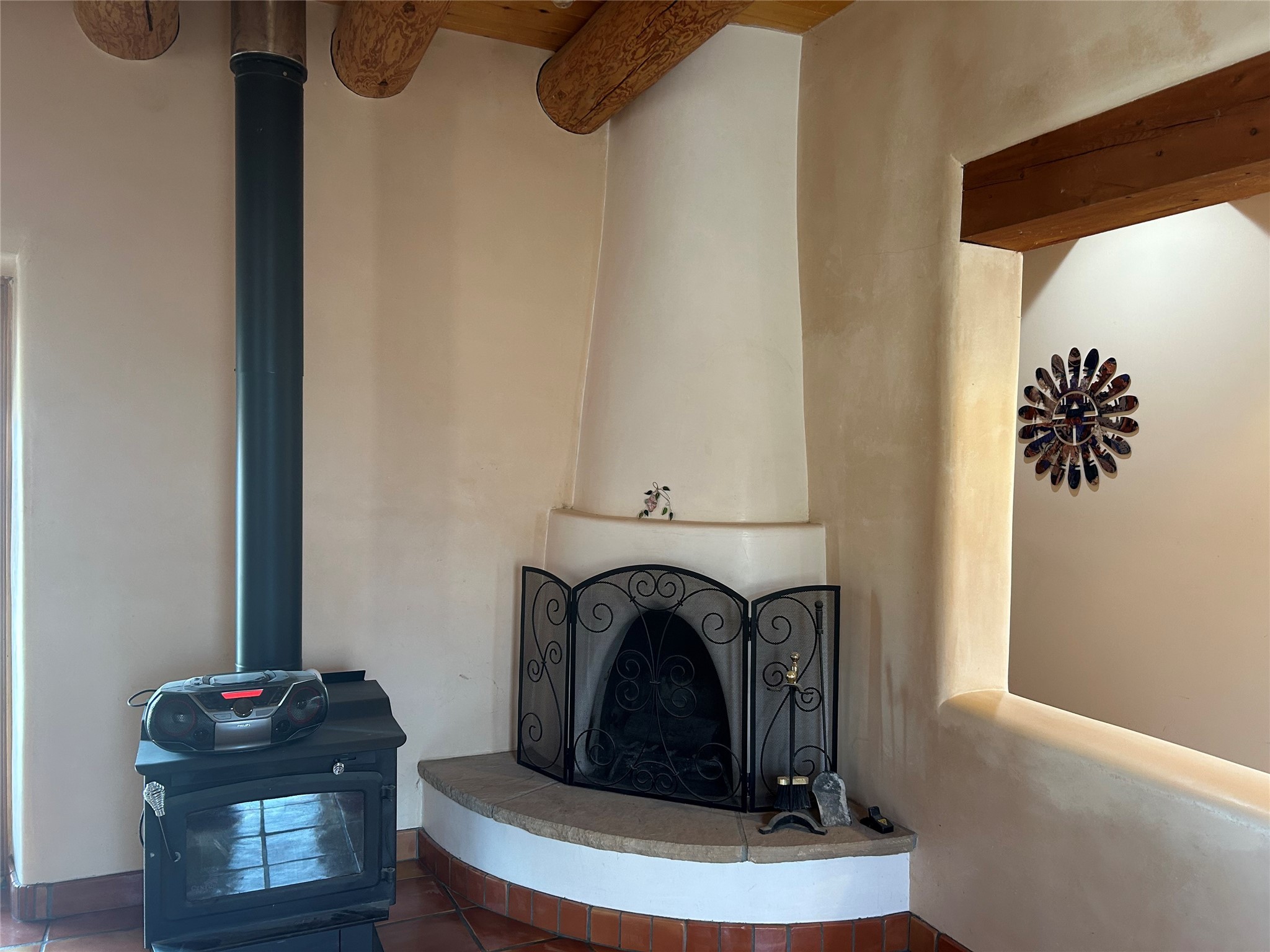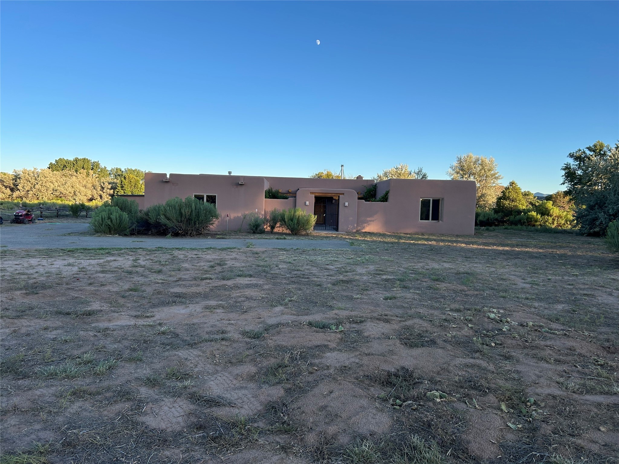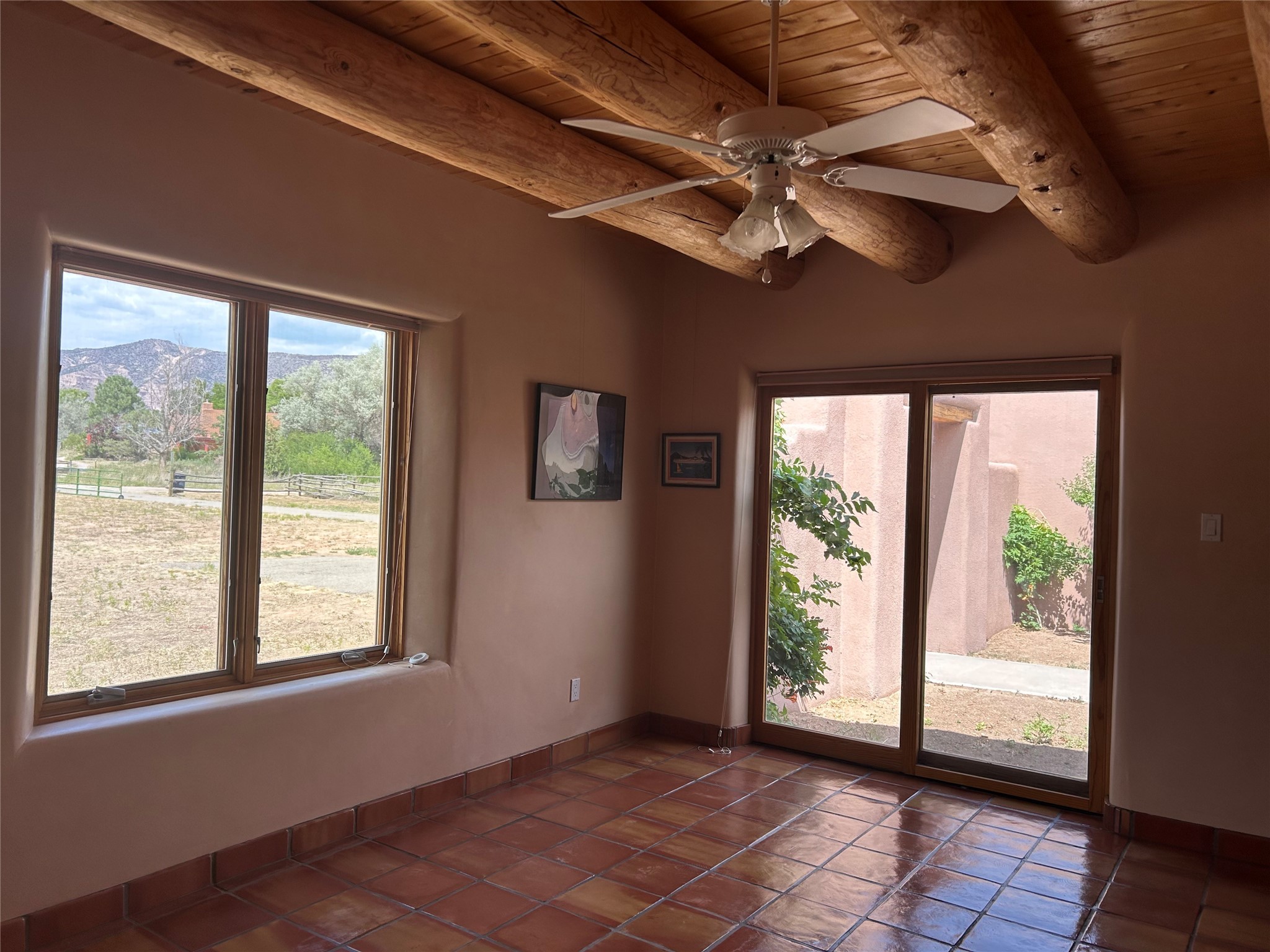 Inspired by Georgia O'Keeffe's beloved landscapes, this Abiquiu adobe home offers artful living with modern comfort. The residence features 3 bedrooms, 2 baths, custom cabinetry thru out the home, rustic beautiful vigas, and serene indoor/outdoor spaces across 2082 sq ft of interior living area. Two car attached garage, walk into a great mud room/laundry room/pantry room. This beautiful adobe home is on 3.45 acre's with water rights, the property provides privacy and connection in equal measure. Bask in the light of an open great room with a kiva fire place or a wood burning stove, or explore nearby Ghost Ranch, Abiquiu Lake, and the scenic Chama River - all within easy reach. Spacious enclosed courtyards invite quiet reflection or lively gatherings. A rare blend of peaceful retreat and cultural access.